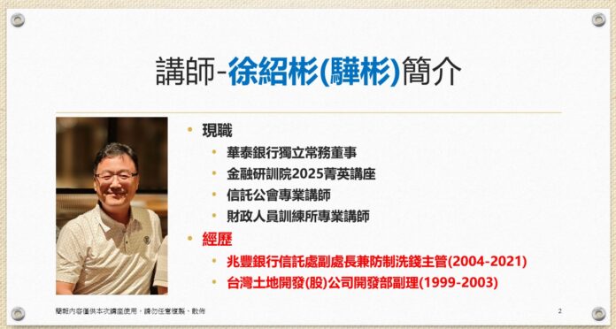二、 本次例會邀請到華泰銀行獨立常務董事徐紹彬先生,專題演講 ”全方位樂活信託概述”,請全體社友踴躍出席!