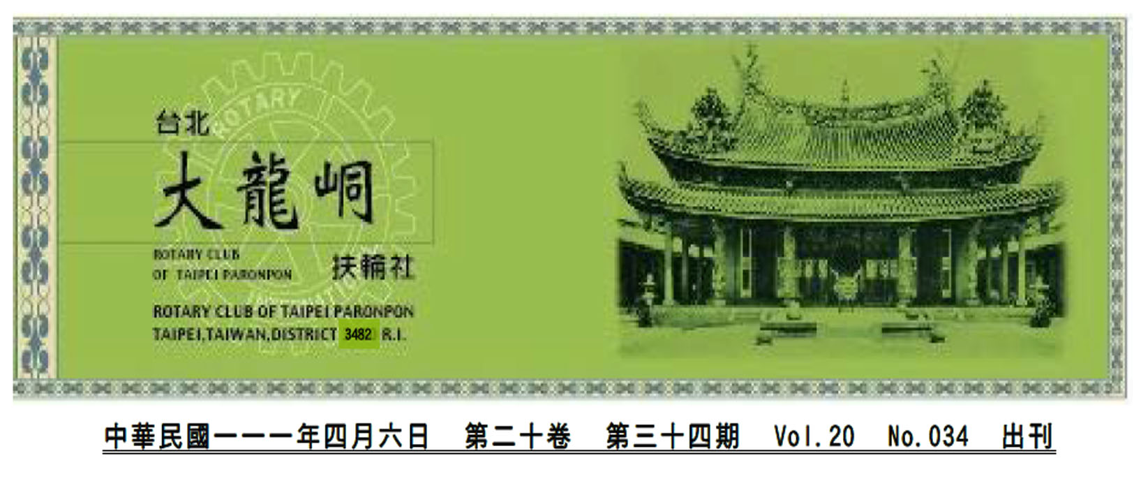 3482地區第5次地區年會將在4月9-10日(六、日)假圓山飯店舉行。茲將本次會議議程簡述如下: